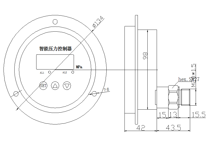 3、4位LED顯示當(dāng)前壓力值,無顯示值誤差