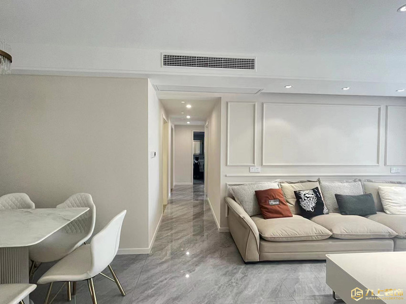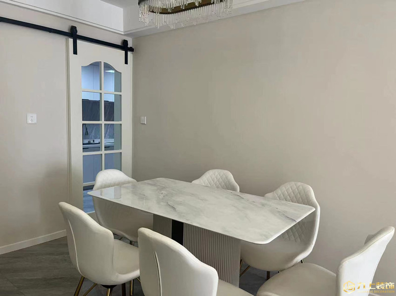 從客廳到餐廳過(guò)入戶動(dòng)線,整個(gè)空間風(fēng)格保持一致.