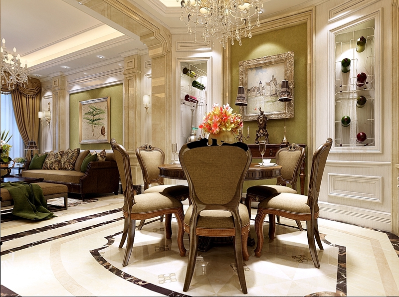 餐廳的旁邊做了一個精致的收納紅酒的場所,給高雅的環(huán)境增添一絲韻味。