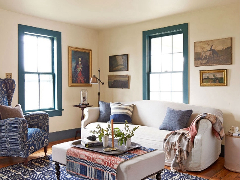壁面裝飾以碎花壁紙為主,引述自然美觀的意境,足不出戶(hù)便可感受到自然的美好。用布簾調(diào)控自然采光的光線(xiàn),在窗前掛藍(lán)色的窗簾,與沙發(fā)上的藍(lán)色小抱枕遙相呼應(yīng),不僅實(shí)用還美觀。