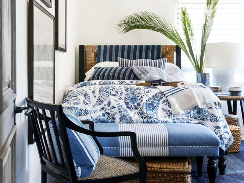 私密空間散發(fā)著濃郁的鄉(xiāng)村風(fēng)味,材質(zhì)的搭配給人舒適的迷人魅力。不同的藍(lán)色給予了這小小的臥室更多的層次,身心就此放松,靜靜地感受小空間的魅力。