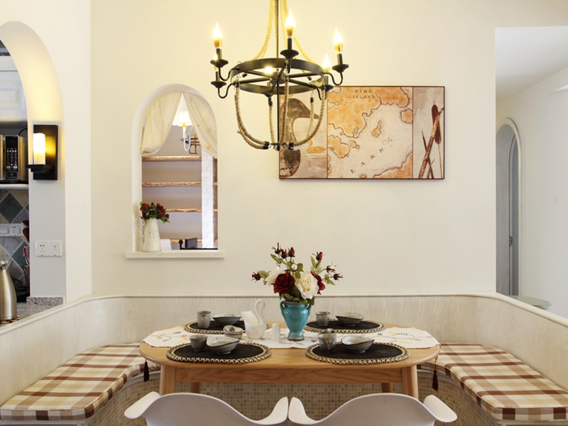 三面靠墻的餐廳都設(shè)計成固定的條凳,多的是隨意、舒服。