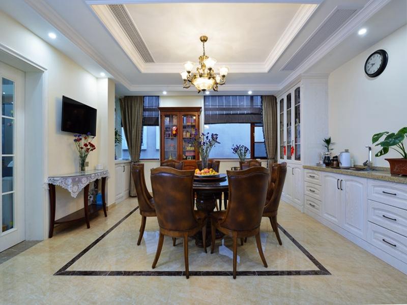 餐廳作為用餐區(qū),保證滿(mǎn)足家人用餐之時(shí),古樸的實(shí)木餐桌椅,椅子與桌子邊緣一般都有一定的雕刻和弧度,典型的美式風(fēng)格。