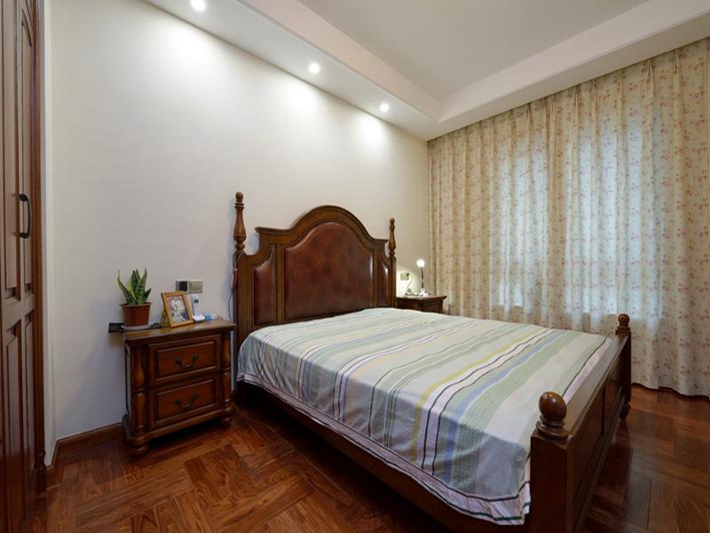 美式家居的臥室布置較為溫馨,作為主人的私秘空間,主要以功能性和實(shí)用舒適為考慮的重點(diǎn)。