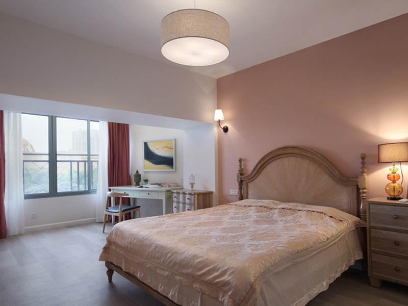 臥室用紅色的窗簾,增加了房間的色彩元素,拯救了全素色房間的尷尬。