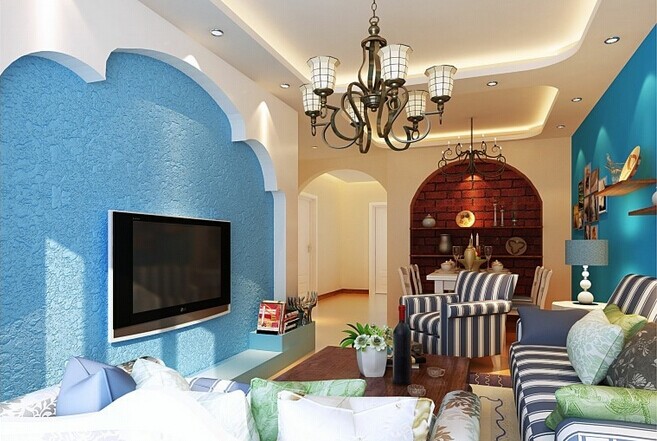 風(fēng)水學(xué)上以高者為山,低者為水。以客廳風(fēng)水而論,其中有高有低,有山有水才可產(chǎn)生風(fēng)水效應(yīng)。低的沙發(fā)是水,而高的電視柜是山,這是理想的搭配。但是縱觀現(xiàn)在家居設(shè)計,電視柜普遍要比沙發(fā)矮些,因此,不可避免地要在擺放電視柜的那面墻上大做文章,我們可以掛畫或者擺放些飾物,令電視柜變相加高,可見,電視背景墻除了能起到裝飾美化客廳的效果,還包含了相當(dāng)?shù)娘L(fēng)水內(nèi)涵。因此,在設(shè)計電視背景墻時有許多風(fēng)水宜忌需要注意。