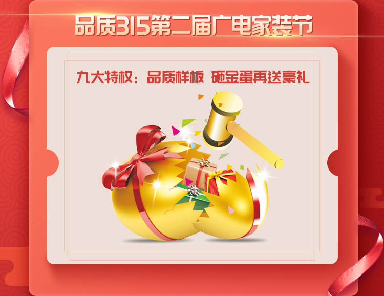 百余建材廠商鼎力贊助,出資贊助禮上加禮,凡簽約業(yè)主即可享受砸金蛋大禮。