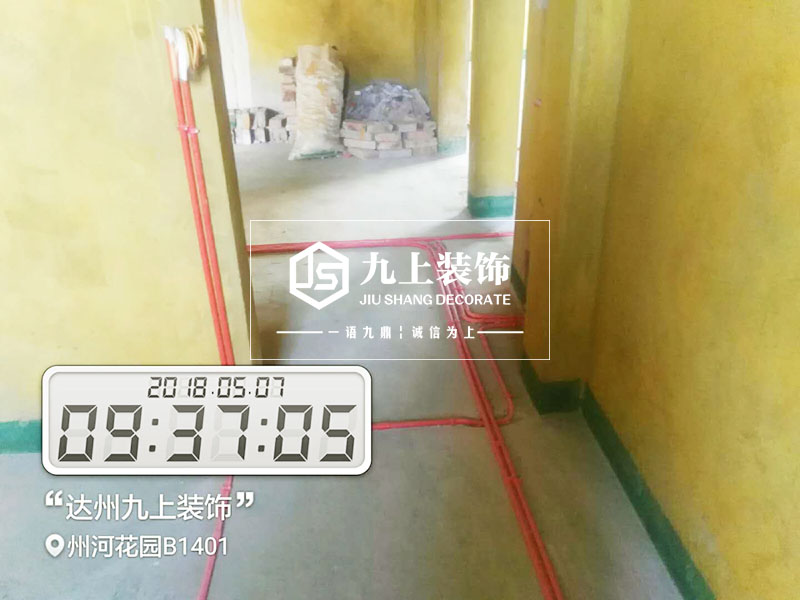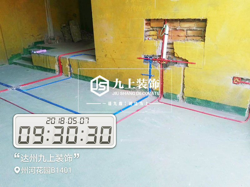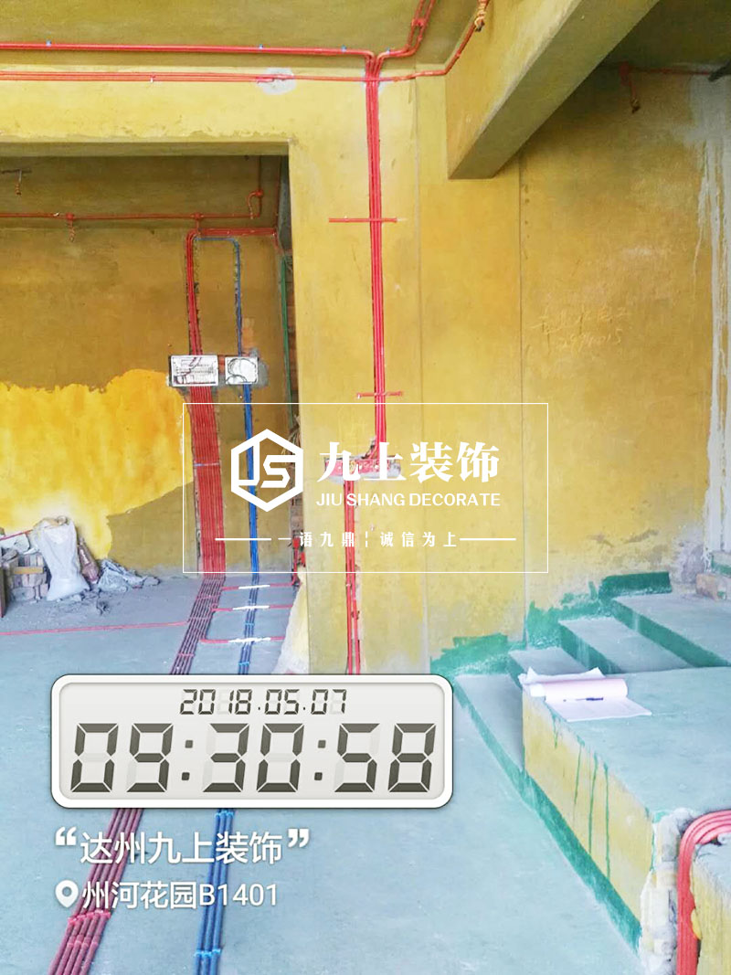 水電改造 橫平豎直轉(zhuǎn)角有彎口,方便后期分線不損傷。強(qiáng)弱電做防干擾處理,線頭處穿波紋管,帶線冒,安裝連接器。