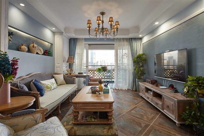 客廳-木質(zhì)家具和地磚整體搭配協(xié)調(diào),體現(xiàn)中簡約的家居風尚,綠植讓家居更充滿活力和生機