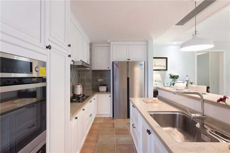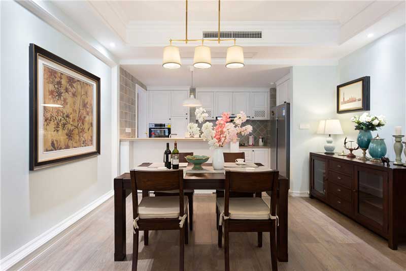 九上裝飾美式風(fēng)格。該戶型改動(dòng)最大的位置是在廚房區(qū)域,原本的廚房空間不大且布局很不合理,業(yè)主是醫(yī)生,飲食比較清淡不喜歡重油煙,所以在設(shè)計(jì)上考慮的是開(kāi)放式廚房,把來(lái)的廚房擴(kuò)大,而且在做飯的時(shí)候還能與自己的親人進(jìn)行互動(dòng)。