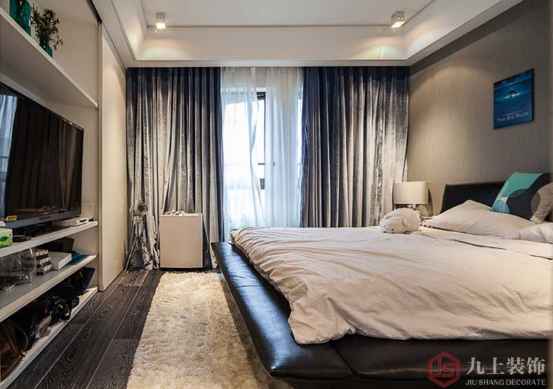 電視機(jī)設(shè)備和儲(chǔ)物空間的巧妙搭配。