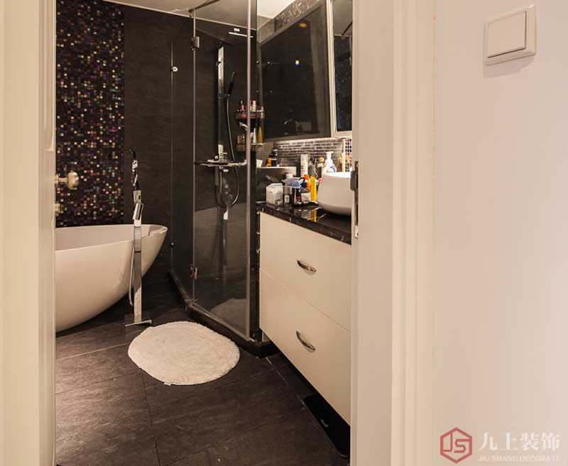 彩色馬賽克點(diǎn)綴的衛(wèi)生間墻面猶如夜空中閃爍的繁星。